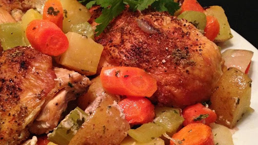 Place the Dutch oven into the preheated oven, and simmer, covered, until the vegetables are tender, about 45 minutes.