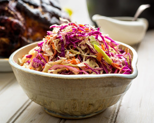 Pour the dressing over the cabbage and toss. Season to taste. The coleslaw may be covered with plastic wrap and refrigerated. Toss again before serving.