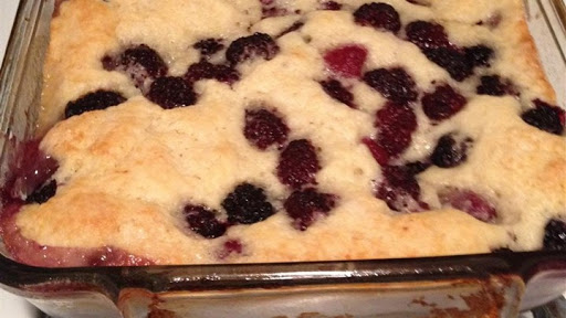 Whisk 1/2 cup sugar together with the flour and baking powder in a mixing bowl. Stir in the milk and margarine until a batter forms. Scrape into the prepared baking dish. Add the blackberries, and sprinkle with 1/2 cup sugar. Pour in the water.