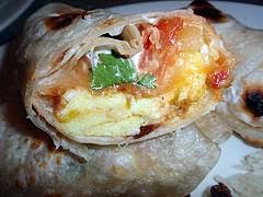 Pour the eggs into the skillet and cook—slowly stirring and scraping up the cooked eggs from the bottom of the skillet—until the eggs are done as you like. Scoop into a serving bowl and sprinkle with the cilantro and optional avocado. Serve with the warm tortillas and salsa or hot sauce for making soft tacos.