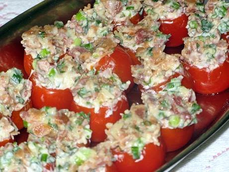 Spoon the mixture into the tomatoes.