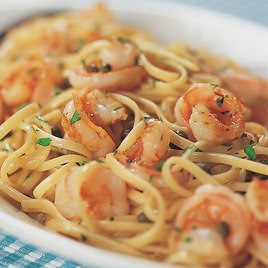 To prepare our Shrimp Piccata Pasta, we seared the shrimp over high heat until just barely cooked through, then set them aside until the sauce was prepared. We used just one pan for cooking both the shrimp and the sauce so the sauce picked up the flavors left behind by the shrimp. We made sure to cook the red pepper flakes with the garlic to maximize their flavor. For cooking pasta, we recommend 1 tablespoon of table salt for every gallon of water. Pasta cooked in unsalted water will taste very bland.
