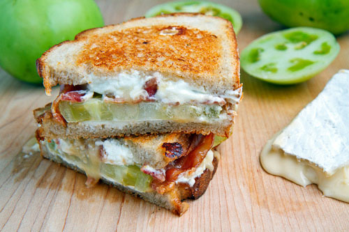 Grilled Brie and Goat Cheese Sandwich with Bacon and Green Tomato