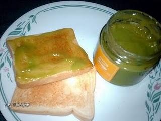 6. When the breadmaker completes the function, take it out and cool for a while, remove all the pandan leaves, then put into a blender and blend lightly till it is smooth.