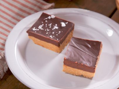 Pour the ganache over the peanut butter mixture and refrigerate until the chocolate is cooled and set, at least 45 minutes and up to overnight.