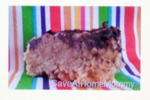In a saucepan melt peanut butter and honey together, do not bring to a boil. Remove from heat, stir in vanilla and rice krispie cereal. Pour mixture into a 8×8 square pan and press mixture down. Add chocolate chips, let them melt a bit, then smooth them over the top, delicious!