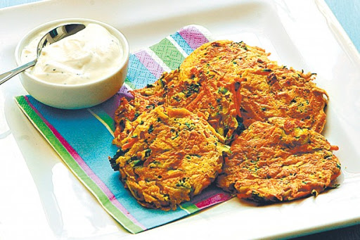 Heat a non-stick frying pan, add a film of oil. Drop heaped tablespoonfuls of the batter into the pan, cooking a few fritters at a time, for 2 to 3 minutes on each side.