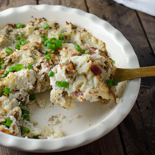Mashed Potato Casserole with Pulled Chicken and Crispy Bacon