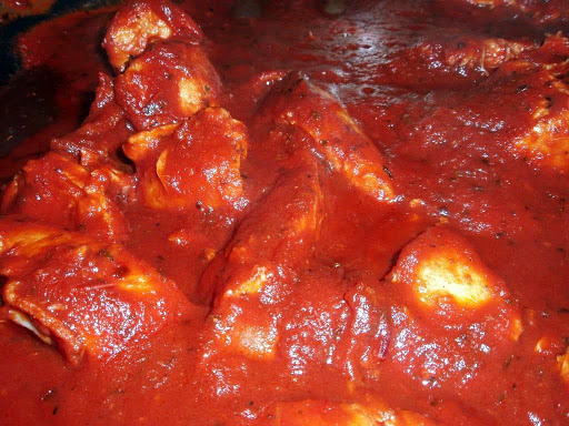 Paleo Chicken W Wine, Bacon and FIre Roasted Tomato Sauce