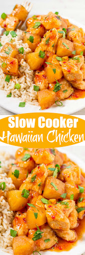 Slow cooker Hawaiian chicken with pineapple is a sweet and savory dish that is easy to make. Serve over rice.