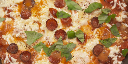 Sprinkle with mozzarella and let melt, 1 minute, then top with crispy pepperoni and basil. Serve with bread.