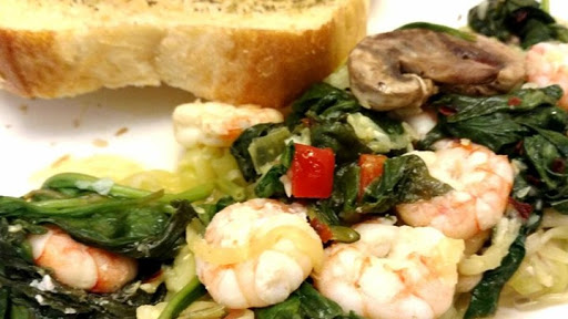 Heat 2 tablespoons butter in the same skillet; cook and stir shrimp and minced garlic until shrimp are just pink, 3 to 4 minutes. Add spinach, lemon juice, red pepper flakes, 1/2 teaspoon salt, and pepper; cook and stir until spinach begins to wilt, 3 to 4 minutes. Add zoodle mixture; cook and stir until heated through, 2 to 3 minutes.