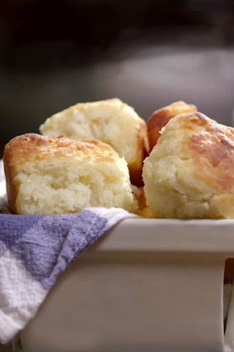 Turn the biscuits out onto a plate, and then invert them again so they are right side up. Pull or cut the biscuits apart and serve immediately with some butter and honey if you like.
