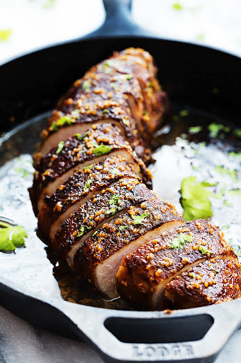 5.Cut tenderloin into 1-inch thick slices. Use a spoon to drizzle the glaze from the pan all over the tenderloin just before serving.