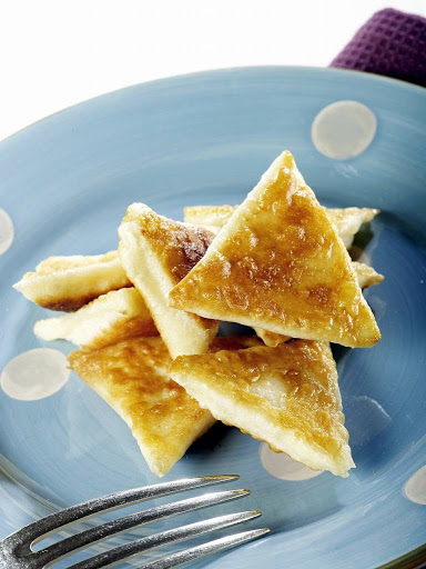 - 3 sheets filo dough (cut into 10-cm/4-inch stips),