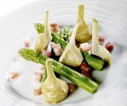 Roast Artichokes, Green Asparagus and Smoked Bacon