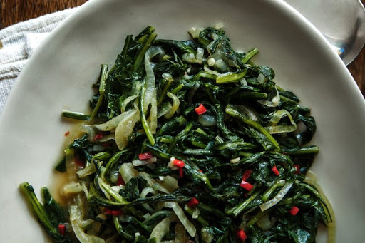 Sautéed Spicy Dandelion Greens and Onions
