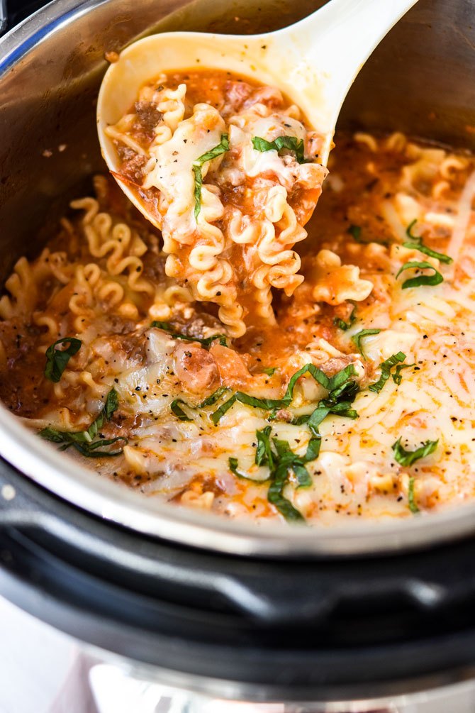 Press the saute function and once the pot is hot, add the ground beef, salt, and pepper. When almost all of the pink is gone, add it the onions and garlic, and cook until the onions are translucent. Drain grease if there is any. Also scrape any bits off the bottom to prevent the burn signal.