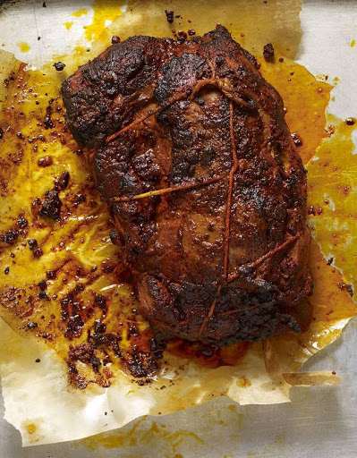 The next day, let pork loin come to room temperature. Preheat oven to 450 degrees. Unwrap pork and scrape off any excess paprika paste to keep it from burning. Place pork in a baking dish or roasting pan with a rack. Place in oven and immediately reduce heat to 300 degrees. Roast until an instant-read thermometer inserted into center of loin registers 145 degrees, 45 minutes-1¼ hours. (Timing will depend on thickness of cut.)