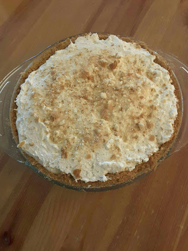 2) Fold remaining pineapple into the whipped topping and spread on top of the cream cheese layer. Crush a few extra vanilla wafers and sprinkle over the top of the pie for decoration or decorate with whole wafers. Refrigerate for at least 4 hrs, preferably overnight