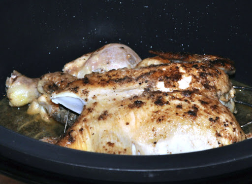 Remove chicken to platter, pour accumulated juice into bowl & serve with chicken.