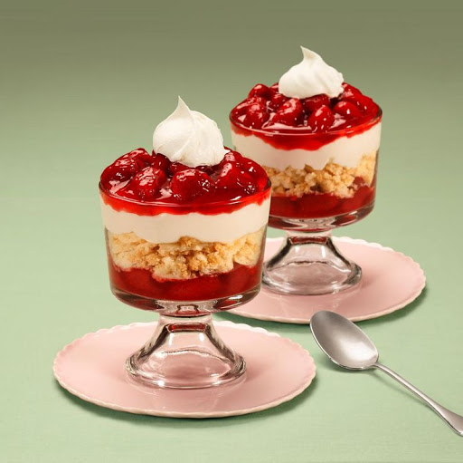 Repeat. End with small amount of cookies and Fresh Strawberries.