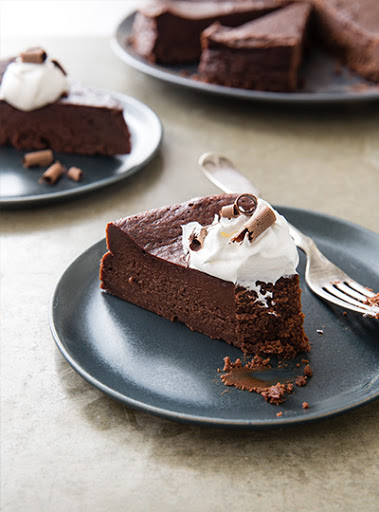 Plan ahead: This cake needs to chill for at least 6 hours, so we recommend making it the day before serving. An accurate oven thermometer is essential here. Our preferred bittersweet chocolate is Ghirardelli 60% Cacao Bittersweet Chocolate Premium Baking Bar. Top the cake with chocolate shavings, if desired; to make shavings, simply shave bittersweet bar chocolate with a vegetable peeler.