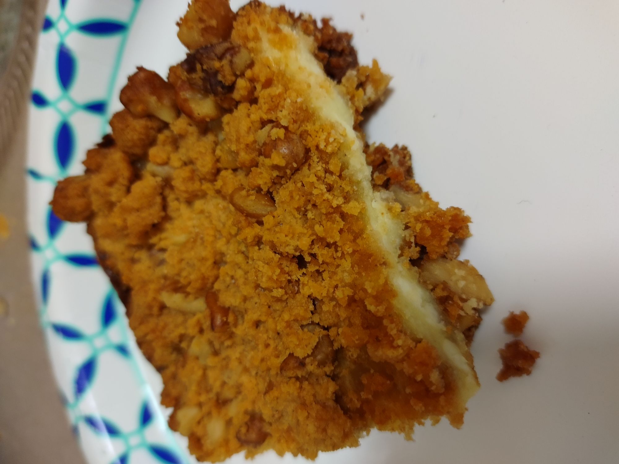 In large bowl, combine cream cheese and sugar; beat until creamy. Add eggs one at a time, beating well after each addition. Blend in flour and lemon juice. Pour evenly over hot baked crust. Sprinkle top with reserved crumb mixture.