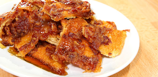 11. Drizzle the remaining maple syrup on top of the bacon pieces, and top with the remaining brown sugar.