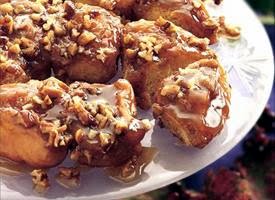 1. Heat oven to 375°F. In ungreased 8- or 9-inch round cake pan, place butter, brown sugar and syrup. Place in oven 2 to 4 minutes or until butter melts. Mix well; sprinkle with pecans.