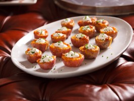 Top each potato with 1/2 teaspoon creme fraiche and a sprinkling of chives. Serve immediately.