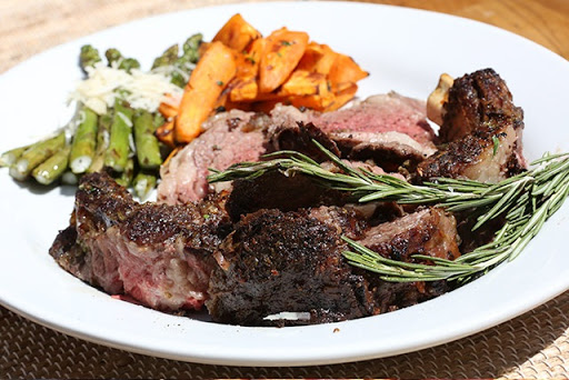 Herb Crusted Prime Rib with Grilled Asparagus and Sweet Potatoes
