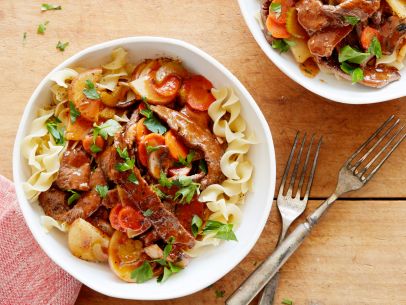 - 6 ounces wide egg noodles, cooked and buttered, for serving