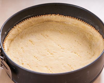 1. In the bowl of a food processor, combine flour, salt, and sugar. Add butter, and process until the mixture resembles coarse meal, 8 to 10 seconds.