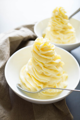 Scoop into bowls. Or be extra fancy and spoon into a piping bag fitted with a star tip. Pipe swirls into bowls.