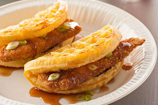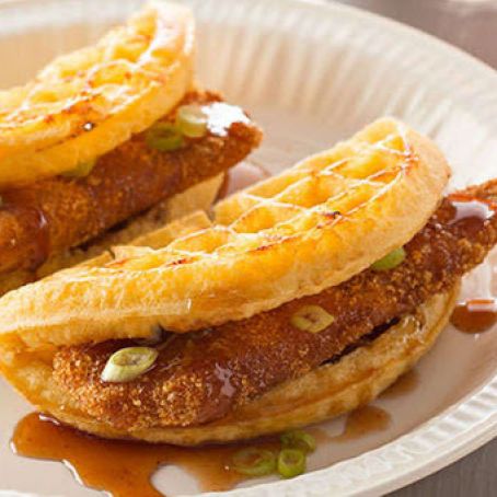 Stuffed with strips of tender chicken, round waffles stand in for tacos in this sweet and savory take on the Tex-Mex favorite.