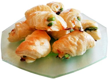 Once all puffs are filled and rolled, brush each with egg wash and bake in preheated oven 15 minutes, until golden brown.