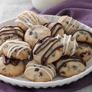 Shape into 1-in. balls. Place 2 in. apart on ungreased baking sheets; flatten slightly. Bake at 375° for 12 minutes or until edges begin to brown. Cool on wire racks. Dip or drizzle with chocolate if desired.