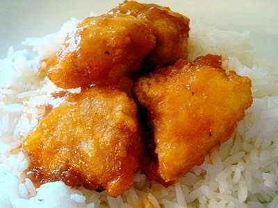 Cut chicken breasts into chunks. Season with salt and pepper. Dip chicken in cornstarch and then in egg (yes, this will be messy but it will be worth it, I promise!). Fry in a little oil until browned on all sides but not cooked through. Place in a single layer in a baking dish.
