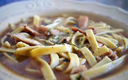 ~get one package (12 oz.) Amish Kitchens Extra Thick Kluski Egg Noodles (don’t get the thin ones, they will mush up into well…mush!) DO NOT, I repeat, DO NOT get regular egg noodles…they will not work, they will get mushy and icky, get the Amish noodles for authentic homemade taste. – under $2