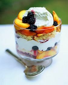 To assemble: Cut cake into 6 pieces. Place 3 pieces in the bottom of a straight-sided glass serving bowl or compote. Spoon half the fruit (and berry juice) over cake. Spoon half of refrigerated whipped cream over fruit. Repeat with remaining cake, fruit, and cream. Drizzle remaining berry juice over trifle.