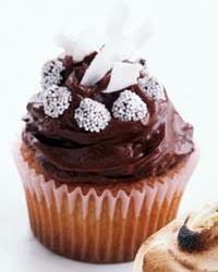 Chocolate -Frosted Golden Cupcakes with Coconut
