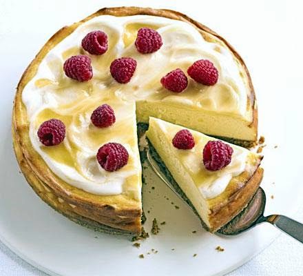 Whisk all the other ingredients in a large bowl until completely combined, pour into the tin, then bake for 35-40 mins until the cheesecake has a uniform wobble.