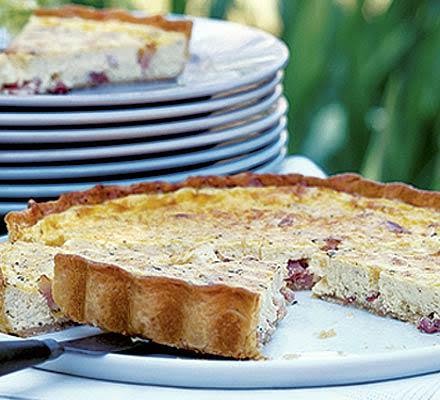 Bake for 35-40 minutes until the filling is set, starting to turn golden and slightly puffed up above the pastry case. Allow to cool a little before removing from the tin. Serve warm or at room temperature, with a green salad.