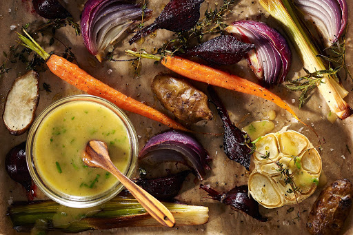 Substitute the finely grated zest of 1 lemon and 1⁄2 cup fresh lemon juice (from 3 or 4 lemons) for the vinegar. Add 1 tablespoon honey and increase the freshly ground black pepper to 1 tablespoon.
