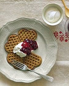 No ordinary breakfast, gingerbread waffles are an easy indulgence and best served with tangy sour cream and tart lingonberry preserves (although, truth be told, they're delicious with any type of berry jam). For a special touch, use a heart-shape waffle iron.