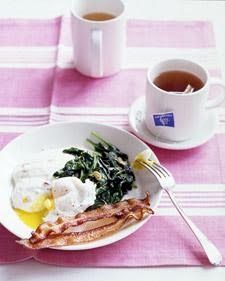 Poached Eggs with Bacon Grits and Wilted Spinach