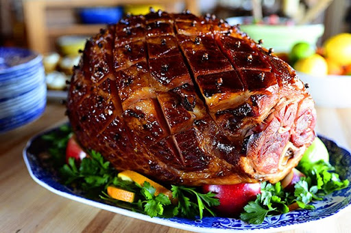 - 1 (18 to 20 pounds) fully cooked ham, bone-in