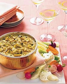 Bake until golden and bubbling, about 15 minutes. Let cool slightly. Garnish with thyme leaves. Serve with crudites.