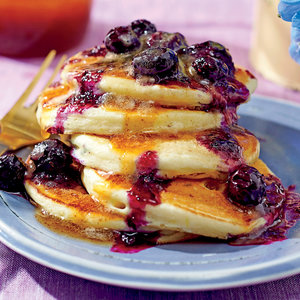 4. Prepare Brown Butter-Maple Syrup: Heat 1/2 cup butter in a small saucepan over medium, stirring often, about 10 minutes. (The butter will foam; when the foam subsides, little brown flakes will appear.) Remove from heat, and whisk in maple syrup. Serve with pancakes and Blueberry Compote.